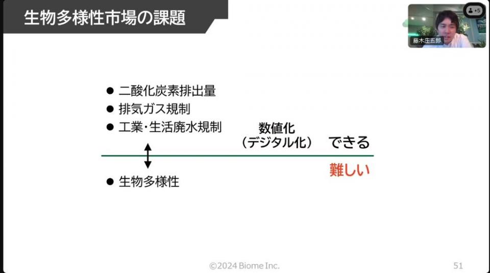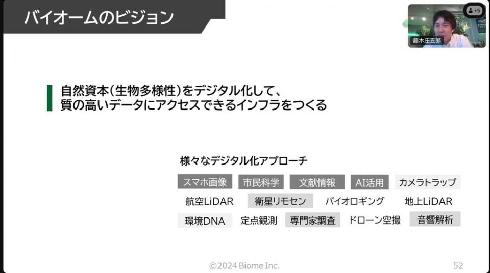 しかし、生物多様性や自然資本は、それを数値化すること自体が非常に難しく、経済の中に生物多様性を組み込む動きの中で大きな課題となっています。そこでバイオームでは、生物多様性をデジタル化して、多くの人がそのデータにアクセスできる仕組みをつくることにチャレンジしてきました。