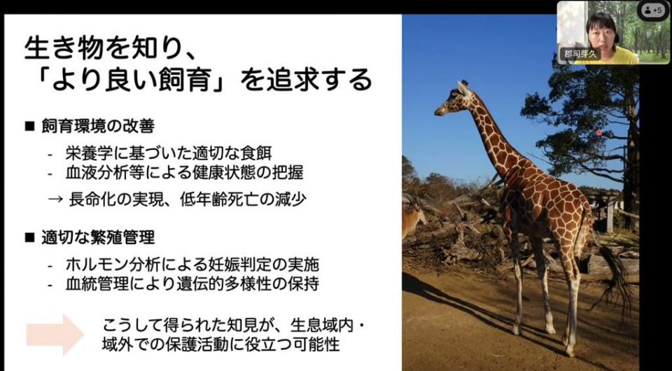 近年の動物園は、生き物をよく知るとともに、より良い飼育を突き詰めていくことに注力する傾向にあります。例えば、科学的な知見に基づいて適切な食べ物を与えることです。また、近年は人間が幼少期からトレーニングをすることで、人が近づいても嫌がらないように飼育しながら、きちんと健康状態を分析・把握する動物園が増えてきています。動物園内で得られた知見は、アフリカで生息する野生キリンに何かがあって保護する時に、役立つ可能性があると考えられています。