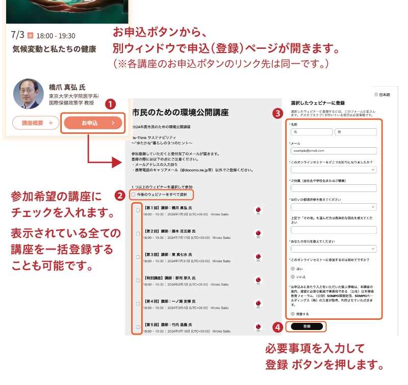 - 登録画面は、全講座共通です。一度の入力で、複数の講座にご登録いただけます。