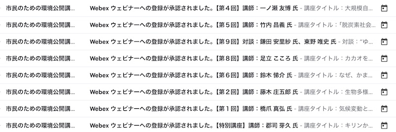 - 左上「今後のウェビナーをすべて選択」チェックを入れると、全ての講座が選択されます。