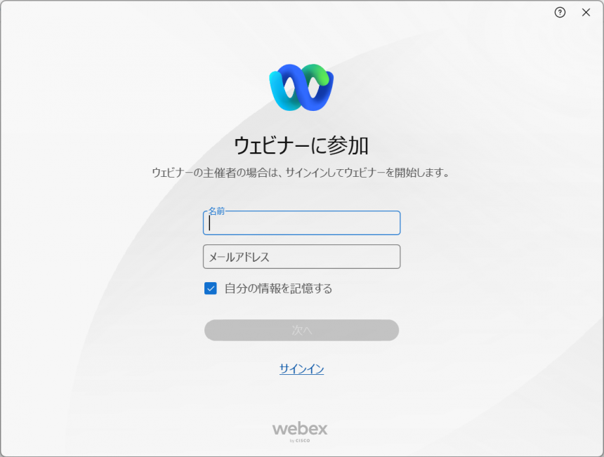 視聴には、「Webex」アプリケーションが必要です。アプリケーションは一度インストールすれば、以後はスムーズにご視聴いただけます。