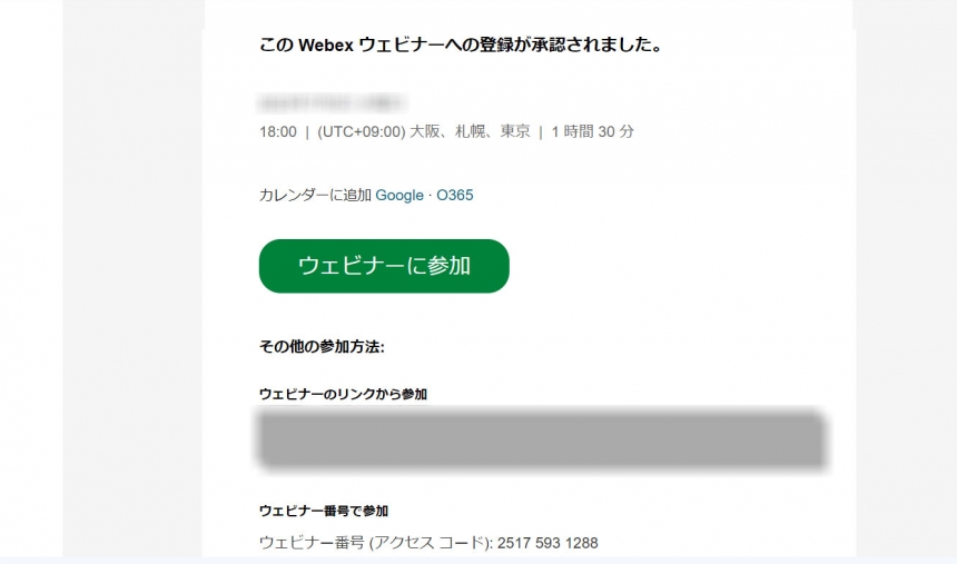 ご案内メール(リマインダ)にある【ウェビナーに参加】ボタンをタップしてイベントページに移動します。