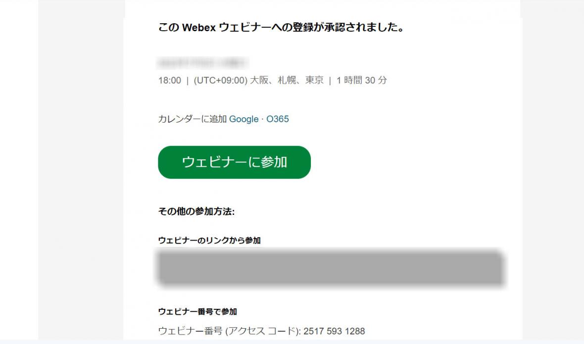 ❷ご案内メールの【ウェビナーに参加】ボタンをタップ