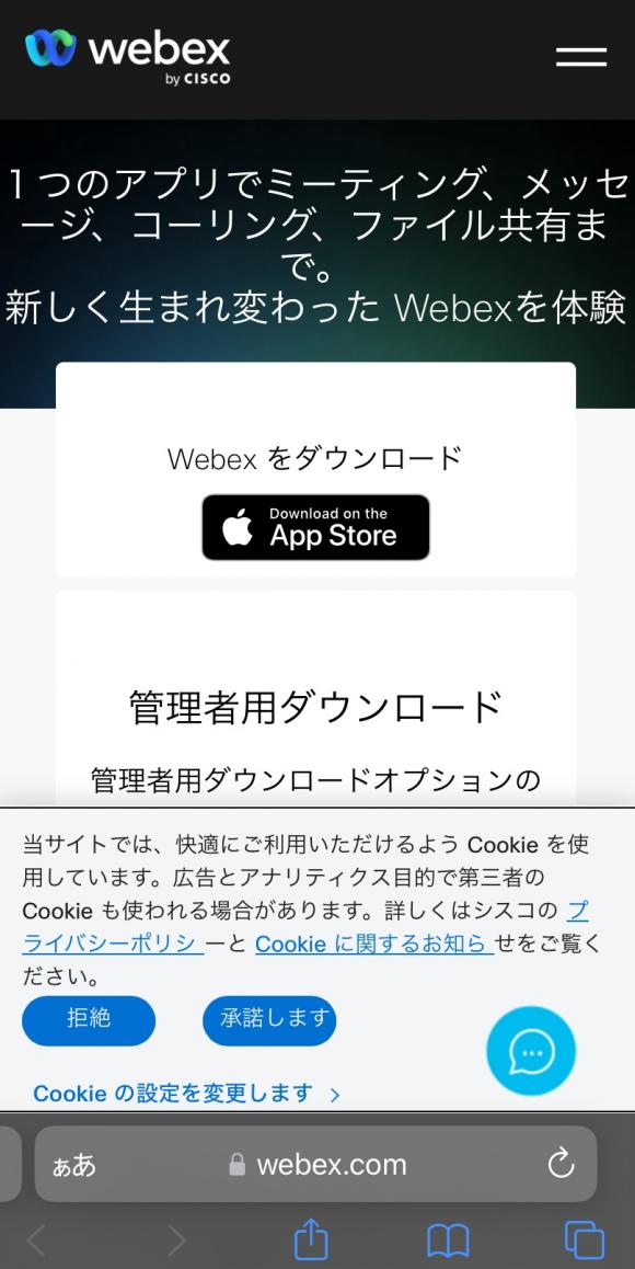 ❶お使いのスマートフォン等にWebexをインストール(初回のみ)