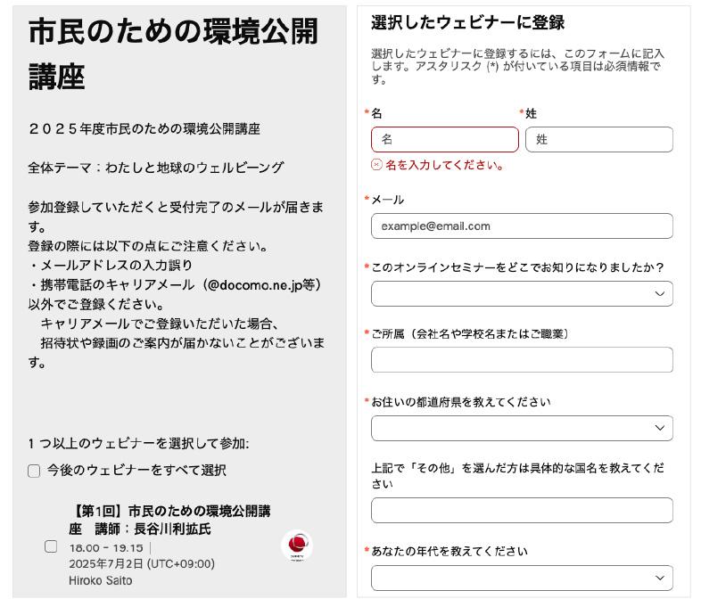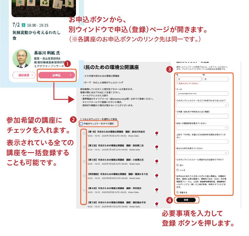 - 登録画面は、全講座共通です。一度の入力で、複数の講座にご登録いただけます。