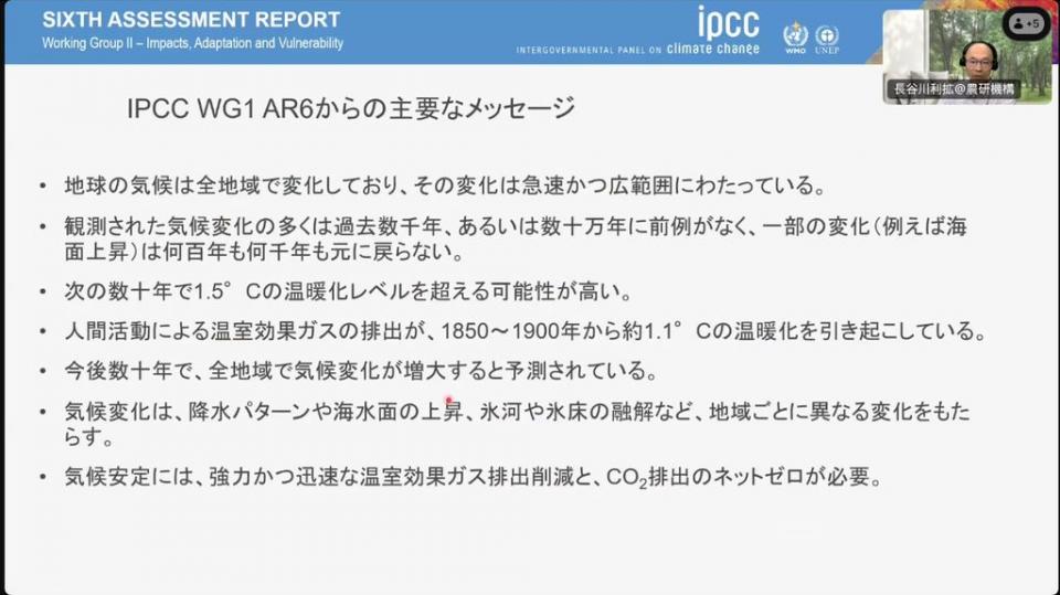 私はIPCCが発表した第6次報告書の作成に携わりました。気候変化が起こった時の影響や適応、脆弱性がどうなるかを調べる第2作業部会の中で、私は農業や漁業、林業などの1次産業と食料に関わる章の執筆に携わりました。