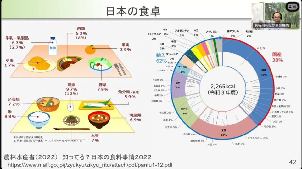 食料システム、つまり食べ物が「つくられ、運ばれ、売られ、食べられ、捨てられる」までを含むシステムと、気候変動の関係もお話しします。私たちの食卓に上るもののうち、国産は38%程度で、多くの国々からの輸入に依存しています。この食料システム自体も、実は気候システムに大きな影響を及ぼしています。たとえば、森林を農地に変えたり、農場から食料が運ばれてきたり、加工されたり、消費されたり、捨てられたりする過程で温室効果ガスが排出されているのです。人為起源の温室効果ガス59Gtのうち、食料システムが関連する部門が約1/3程度の排出源になっていると推定されています。