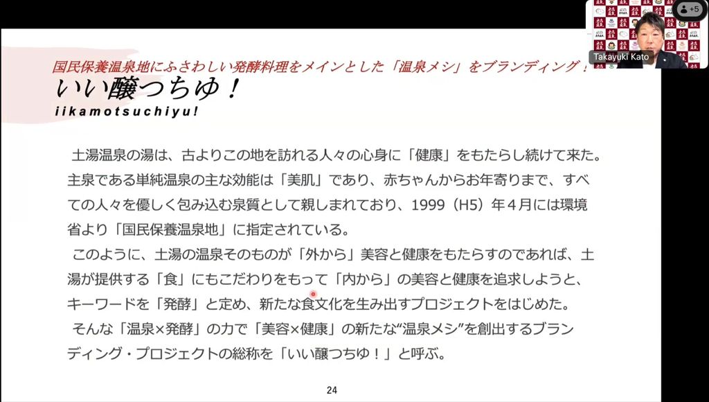 人も持続可能にしていくことが、温泉地の使命と考えて「新・湯治」も推進しています。その一環として、温泉街で気軽に購入ができる、発酵料理がメインの温泉メシ「いい醸(かも)つちゆ」をブランディングしました。