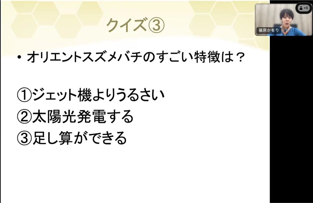 次にハチつながりのクイズを出します。外国に住んでいるオリエントスズメバチの、すごい特徴は何でしょうか。