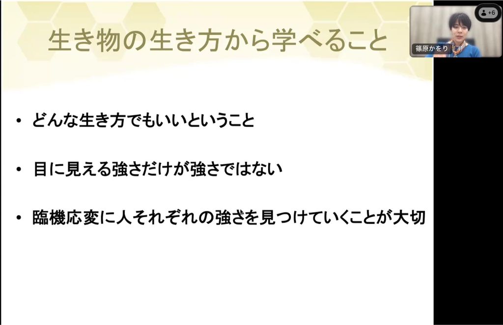 ご紹介した生き物たちからは「どんな生き方でもいい」ということが学べると思います。また「わかりやすい強さばかりが強さではなく、臨機応変に人それぞれの強さを見つけられればいい」ということも学べると思います。